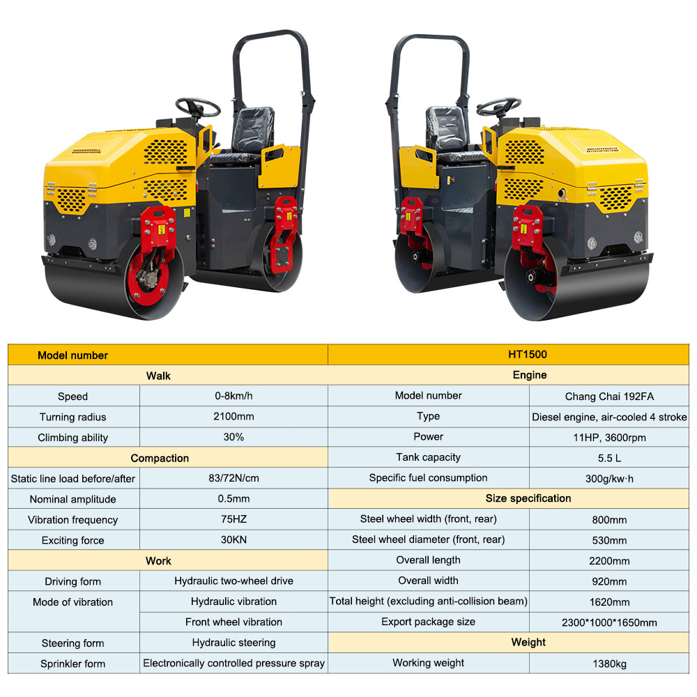 Rouleau routier entièrement hydraulique HT-1500 1,5T
