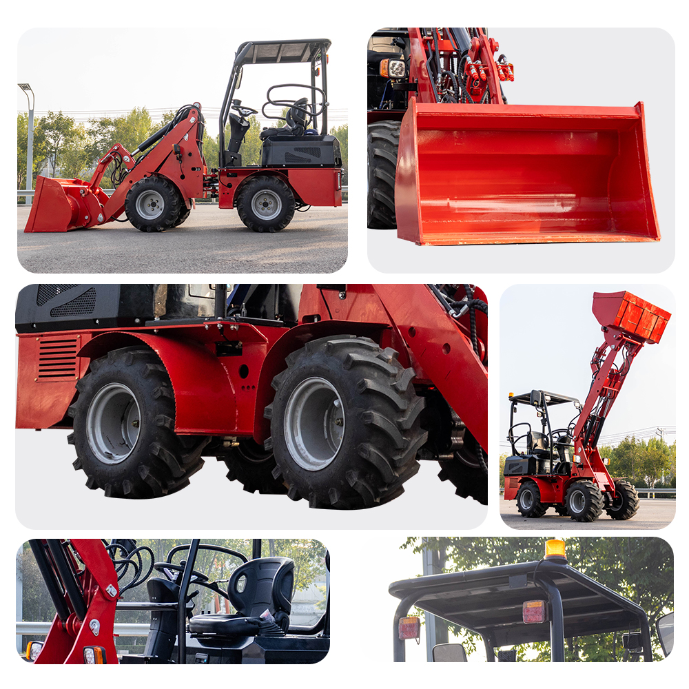 Ce chargeur à quatre roues a une grande capacité de transport, un godet standard de grande capacité, un matériau épais, résistant à l'usure et durable, un tube hydraulique, un fil d'acier antidéflagrant, une protection multiple, pratique et plus sûr.