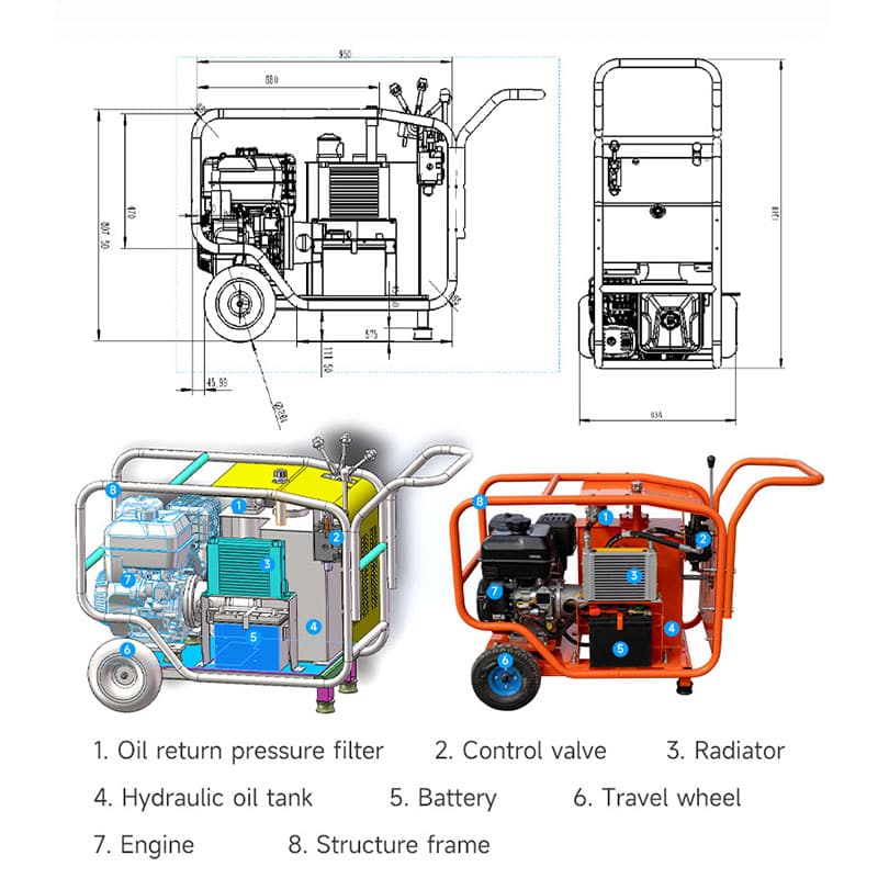 Les composants hydrauliques et le moteur de marque garantissent une longue durée de vie à la puissance hydraulique.